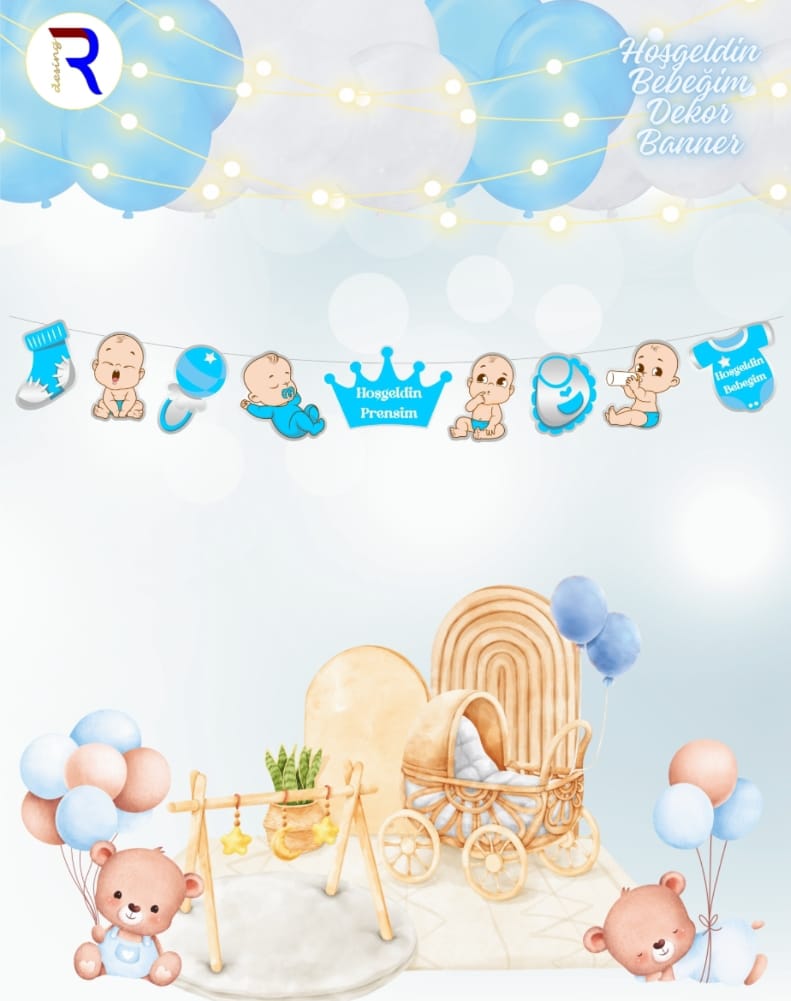 / Hoş Geldin Bebeğim Mavi Dekor Banner