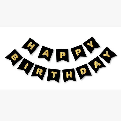 Siyah Altın Happy Birthday Yaldızlı Banner adet
