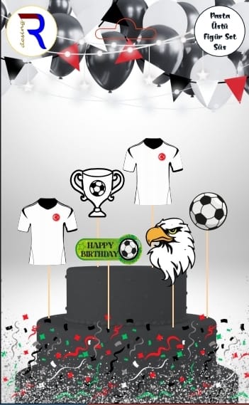 / Siyah Beyaz Pasta Üstü Figür Süs Set